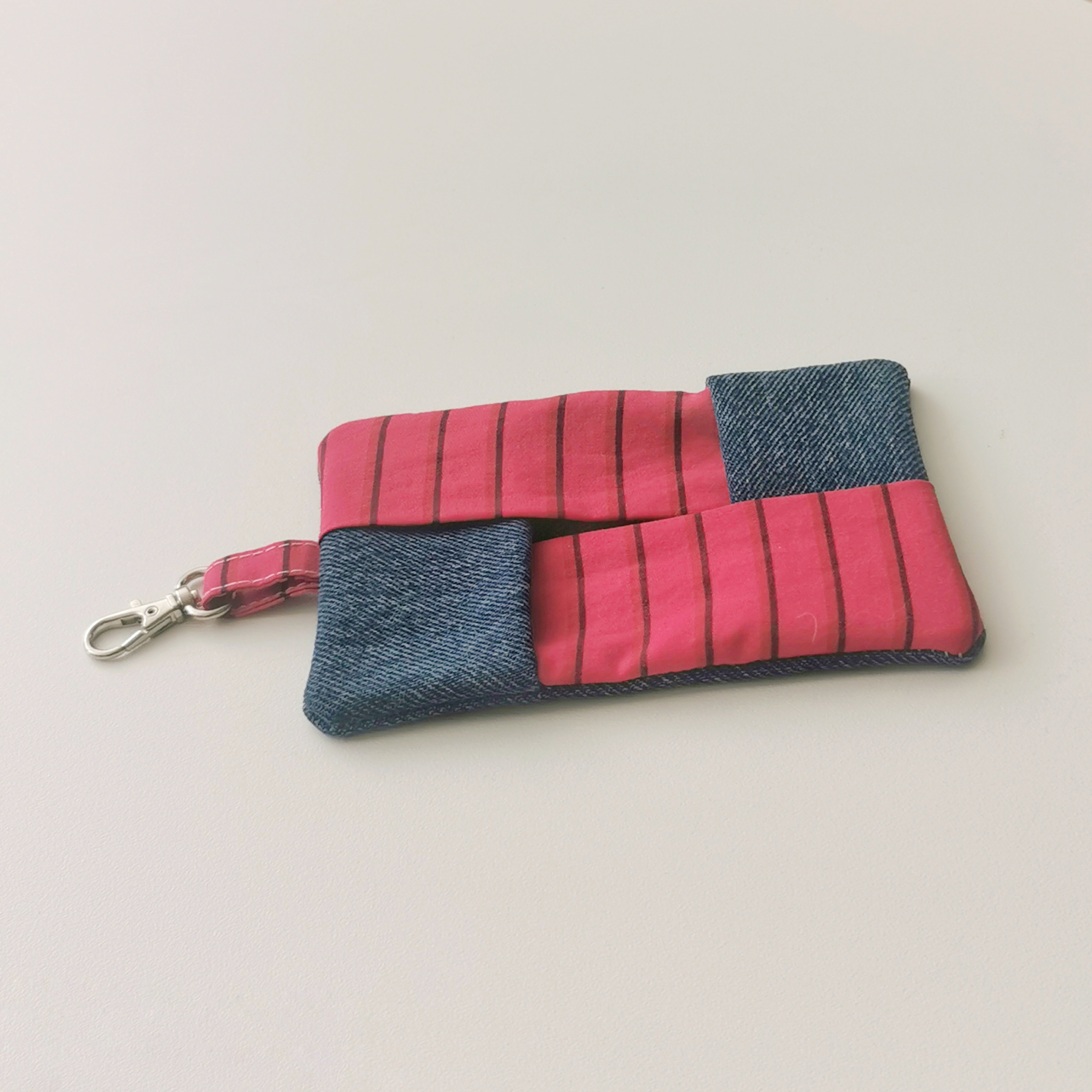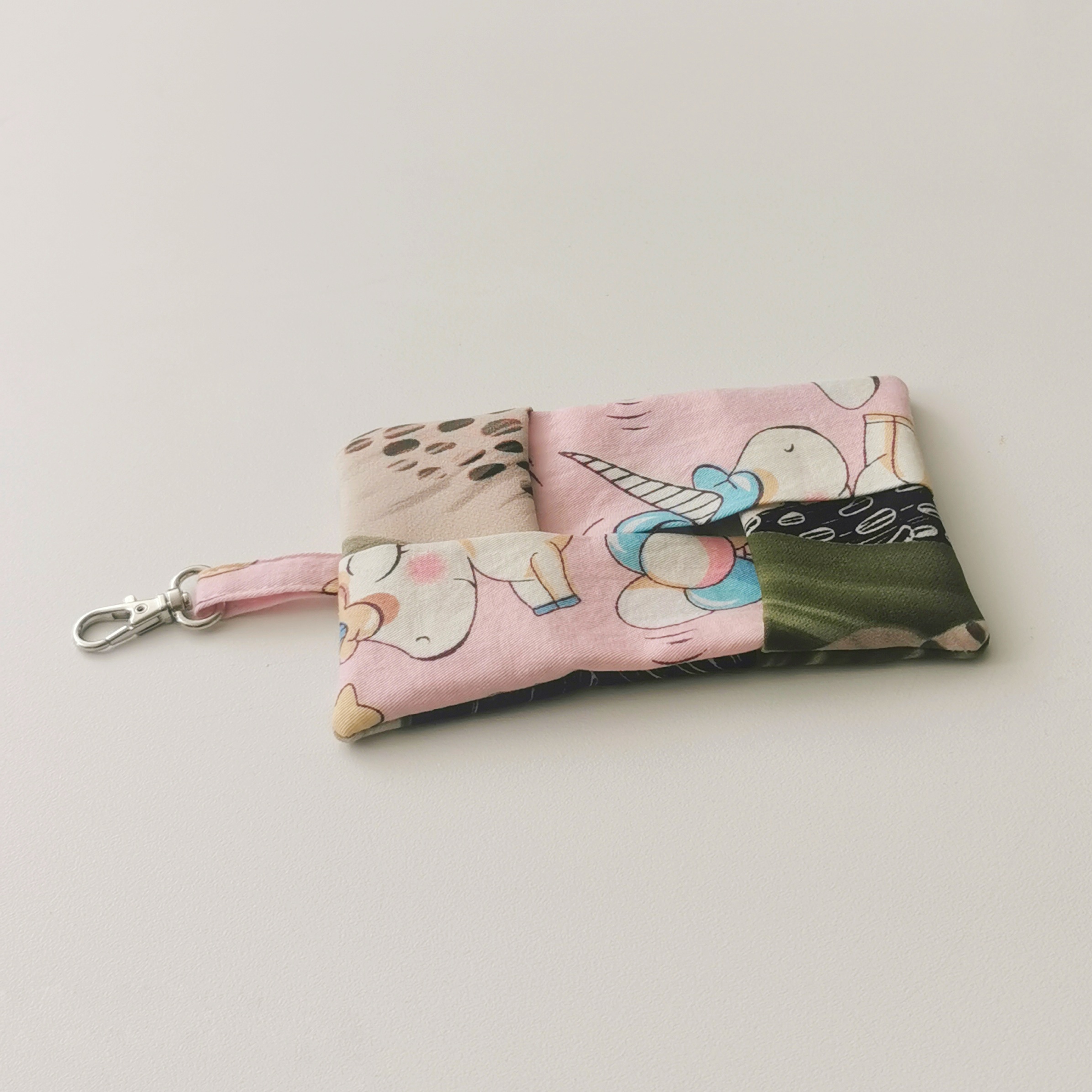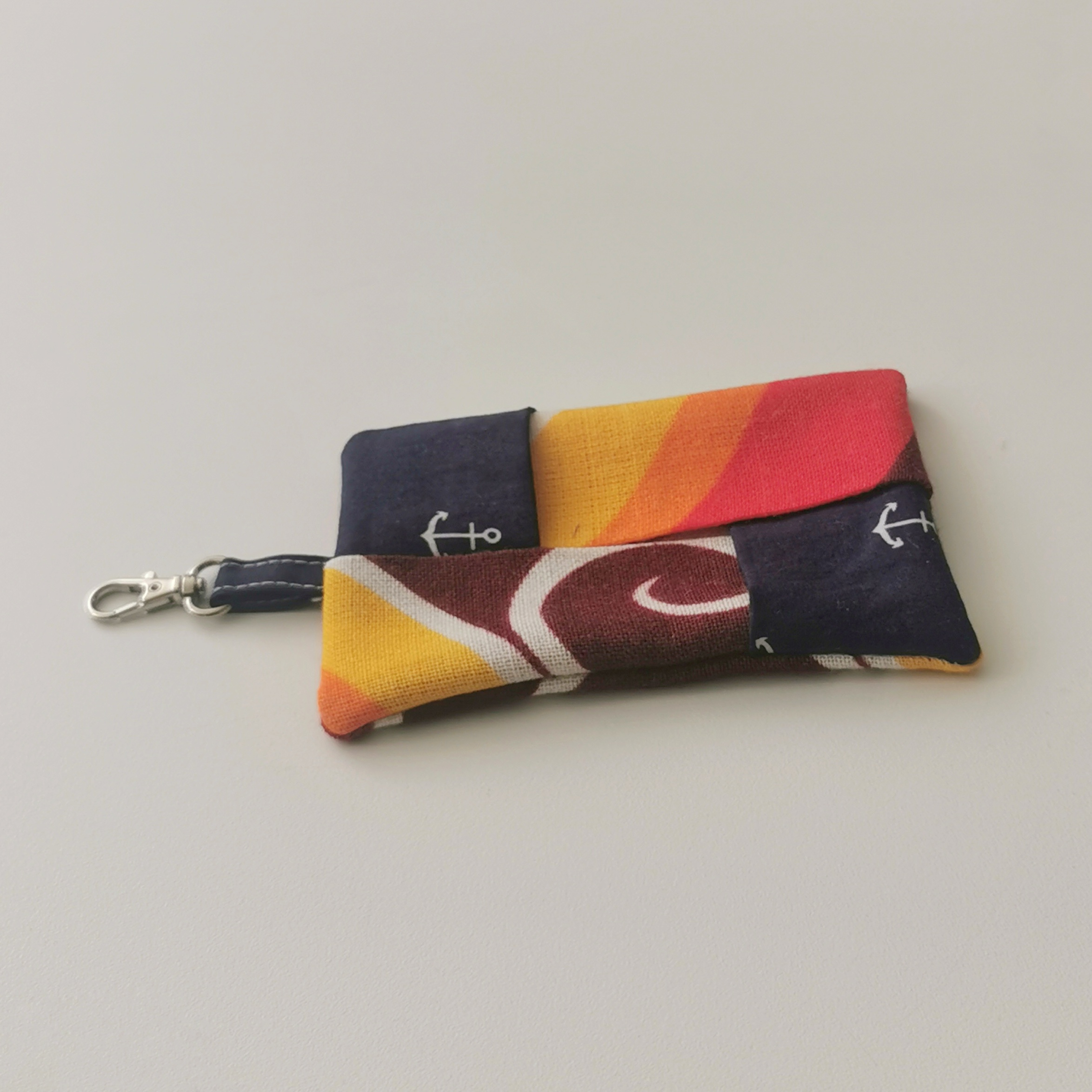 נרתיק לטישו לנסיעות בעבודת יד מבדים ממוחזרים, מתאים לנשיאת טישו בתיק.